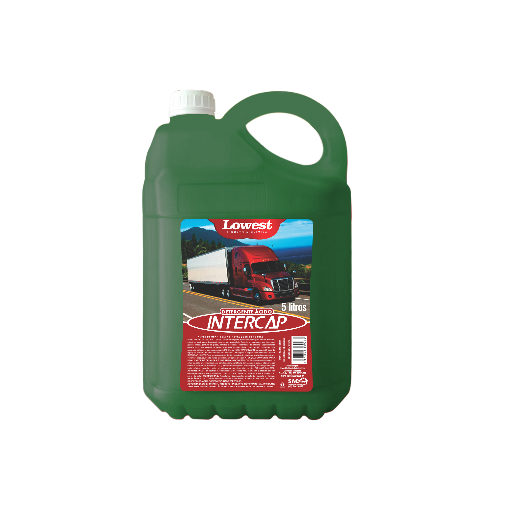 INTERCAP LOWEST é um detergente ácido formulado para limpar alumínio, máquinas e estruturas de concreto sem corroer a superfície. Seu alto poder desengraxante remove graxas, óleos, gordura de pisos, paredes e sujeiras encardidas de oficinas. Especialmente desenvolvido para lavagem de rodas, carrocerias, motores, entre outros.