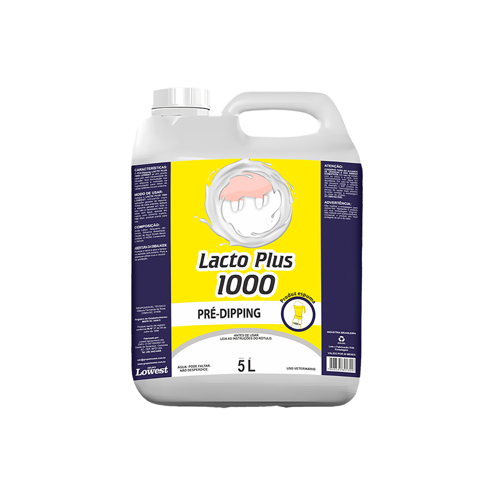 O PRÉ-DIPPING LACTO PLUS 1000 LOWEST já vem pronto para uso, sem necessidade de diluição. Sua formulação rica em espuma é indicada na higienização para tetos de vacas leiteiras na pré ordenha.