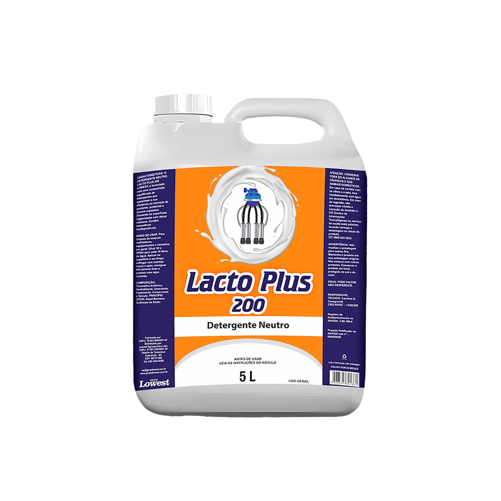 O DETERGENTE NEUTRO CONCENTRADO LACTO PLUS 200 LOWEST é formulado com uma composição equilibrada de detergentes que aumentam a sua eficiência na remoção de gorduras, proteínas e demais sujidades. Deixando as superfícies higienizadas sem deixar resíduos. Contém tensoativos biodegradáveis.