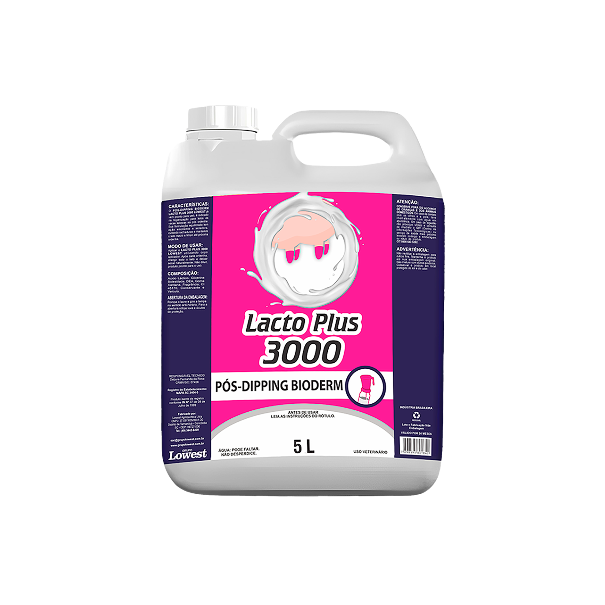 O PÓS-DIPPING BIODERM LACTO PLUS 3000 LOWEST já vem pronto para uso, é indicado na higienização para tetos de vacas leiteiras na pós-ordenha. Sua formulação equilibrada tem ação emoliante e seladora, evitando rachaduras e mantendo o teto macio e limpo até próxima ordenha.
